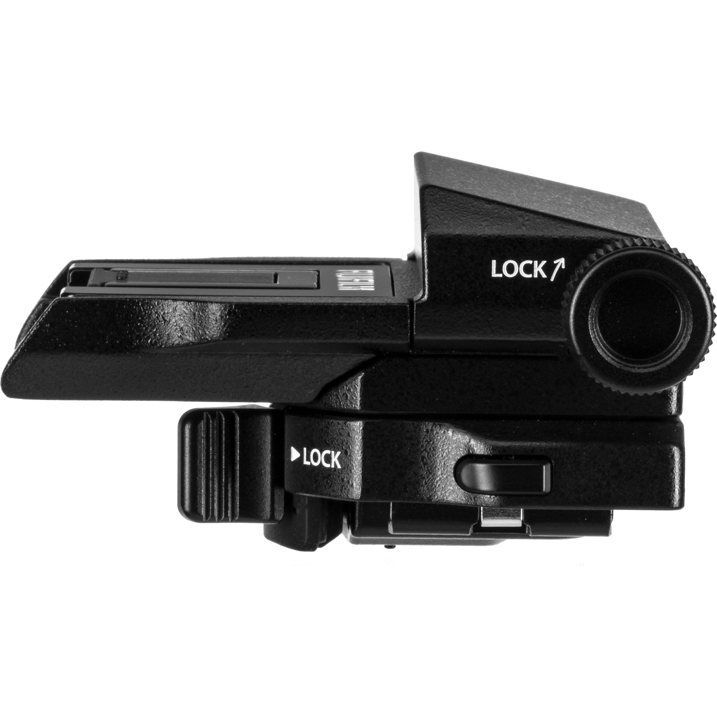 Este adaptador se coloca entre la cámara y el visor y ofrece un rango de movimiento giratorio horizontal de +/- 45° y un rango de movimiento vertical de 0-90° para adaptarse a tomas a la altura de los ojos desde una variedad de ángulos de trabajo.