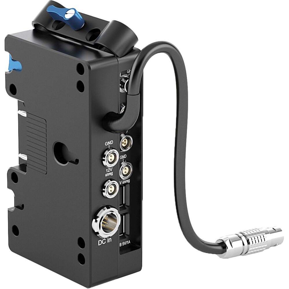 Alimente y agregue múltiples puertos de accesorios a su equipo de cámara usando una batería Gold Mount y el Caja divisoria de potencia Mk II de ARRÍ . Esta placa tiene una variedad de puertos de salida de accesorios e incorpora un soporte de varilla LWS de 15 mm. Compatible con cámaras ALEXA Mini y Mini LF, esta placa divisora tiene un puerto LEMO de 8 pines para conectarse a una batería de bloque o usar un cable ARRI KC-50.