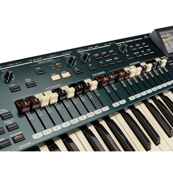 Tres motores de sonido diferentes: Órgano, Piano/Conjunto y Sintetizador mono