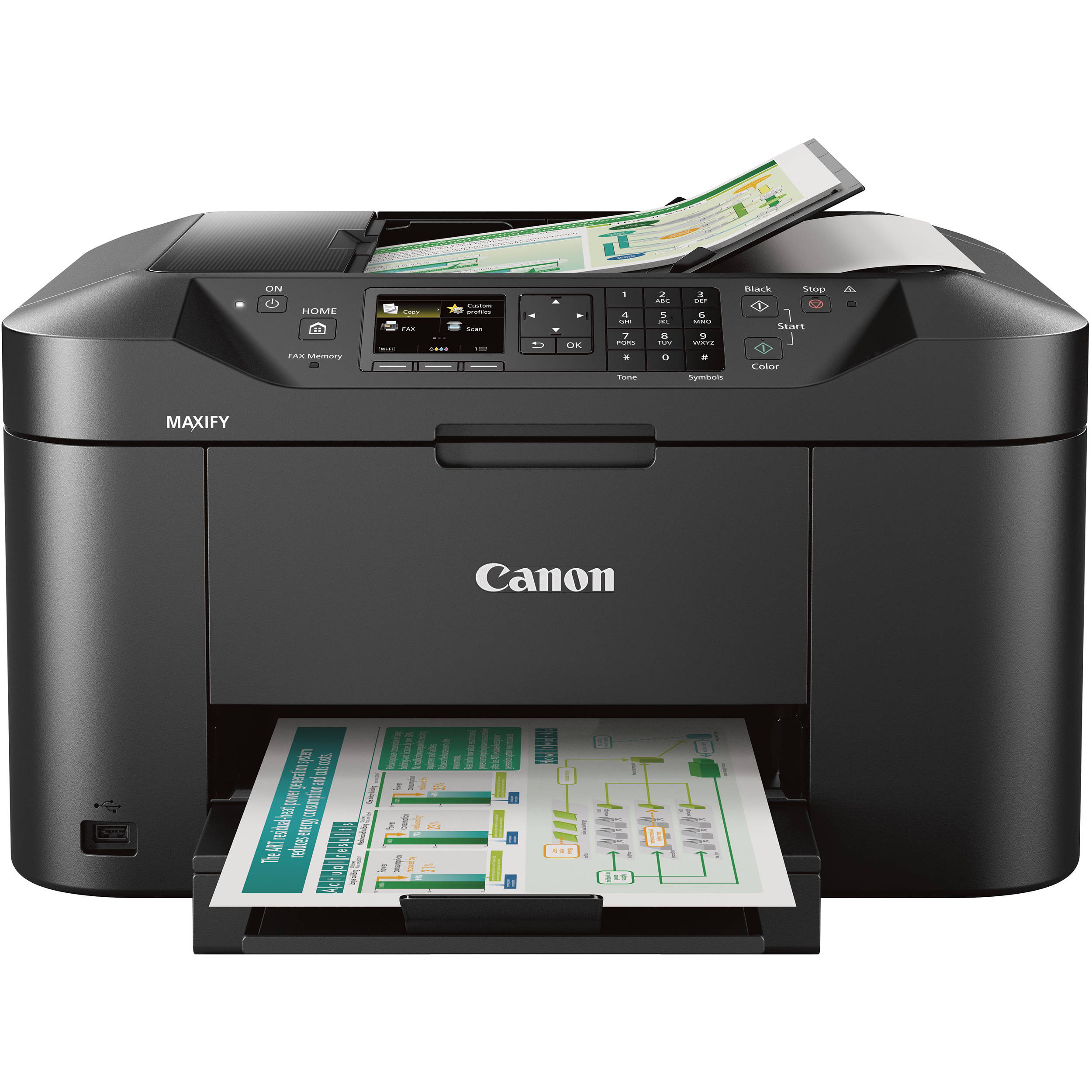 Aumente la productividad personal con Wi-Fi habilitado Impresora de inyección de tinta multifunción inalámbrica para oficina en casa MAXIFY MB2120 de Canon . Capaz de imprimir, escanear, copiar y enviar faxes, la impresora es rápida con velocidades de impresión de 19 ipm en negro o 13 ipm en color, así como impresión automática a doble cara. Las impresiones se producen con una resolución de 1200 x 600 ppp. Los escaneos se pueden realizar a través de la plataforma plana de 8,5 x 11″ o del alimentador automático de documentos de tamaño legal de 50 hojas con una resolución de 1200 x 1200 ppp.