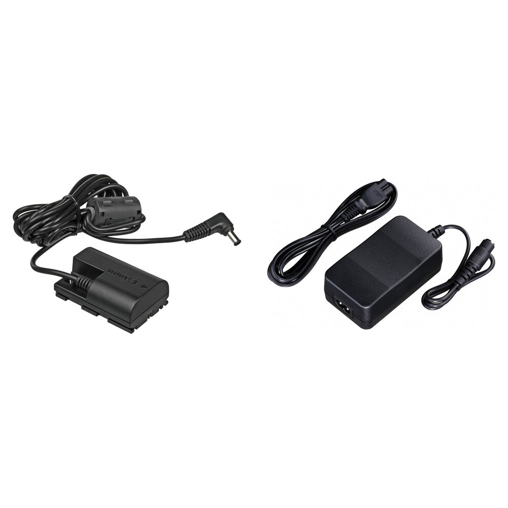 El kit incluye el acoplador de CC Canon DR-E6 y el adaptador de CA Canon AC-E6N.
