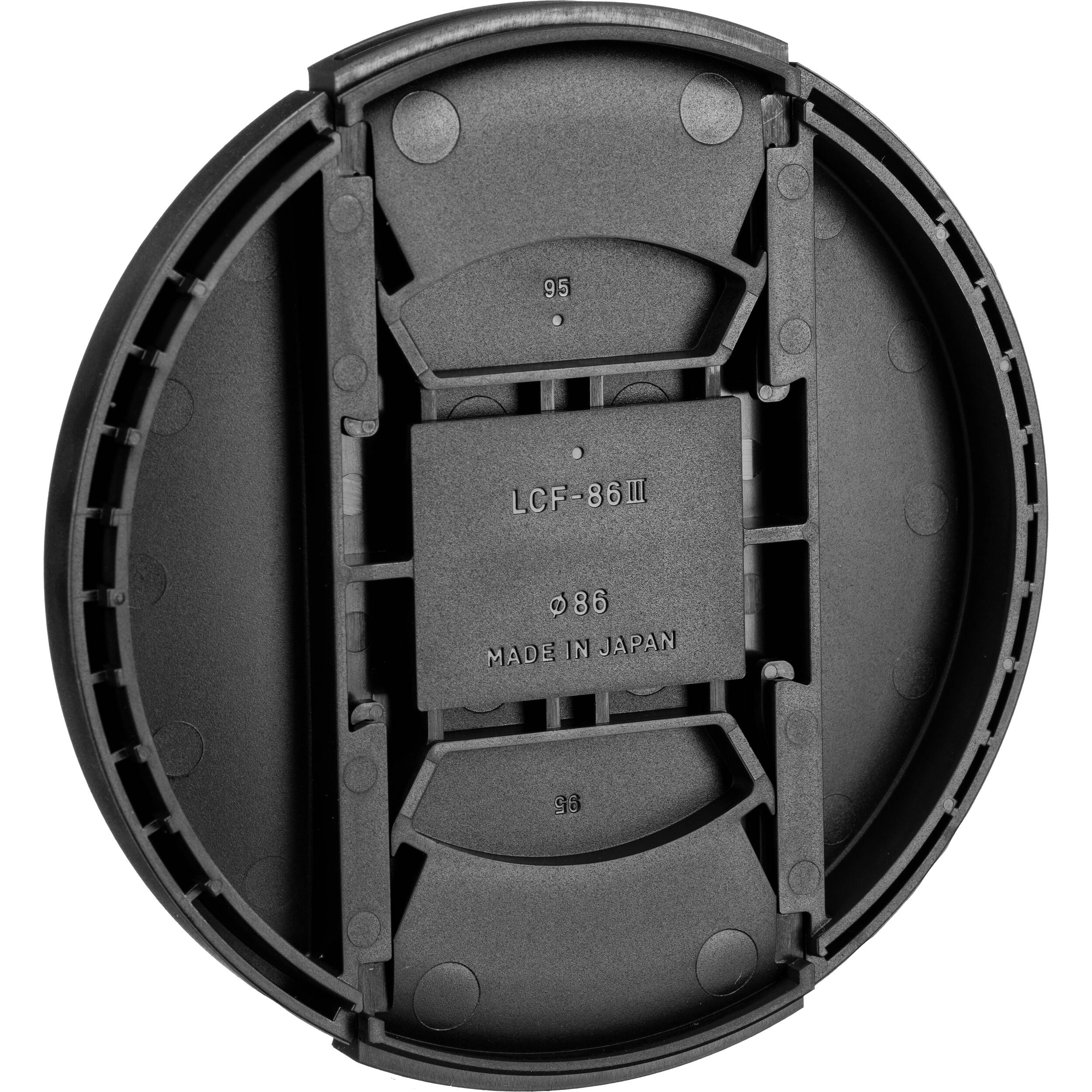 El LCF-86III de Sigma es una tapa de lente de repuesto o de repuesto diseñada para adaptarse a lentes y cámaras con una 86mm diámetro del hilo. La tapa de la lente utiliza un diseño de pellizco central y lateral. Presenta un acabado en negro mate con el logo de Sigma en el frente.
